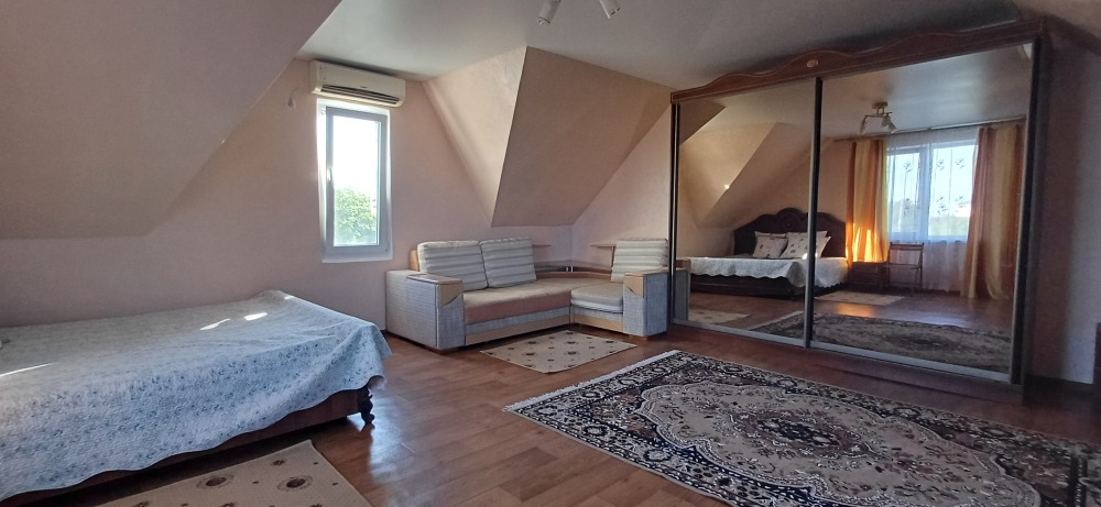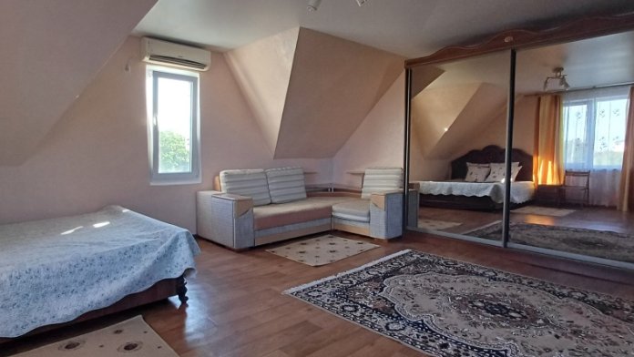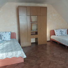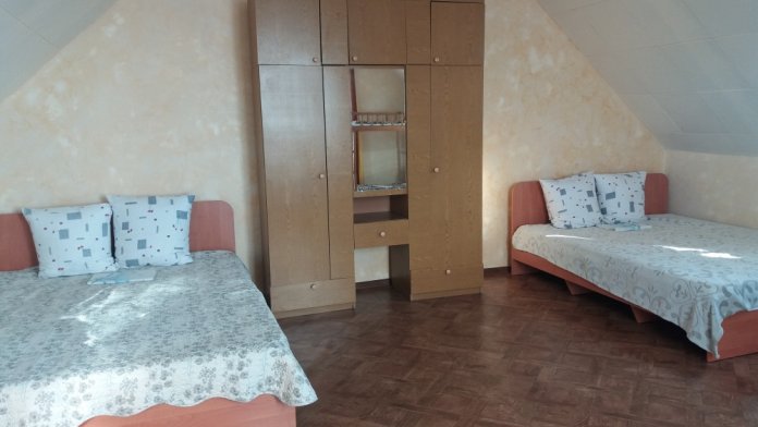 На первом этаже расположены две комнаты, которые сдаются под ключ. Одно и 2-комнатные комнаты 3-4 и 5-7 койко-мест, соответственно. По желанию отдыхающих предоставляются дополнительные места.