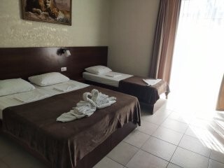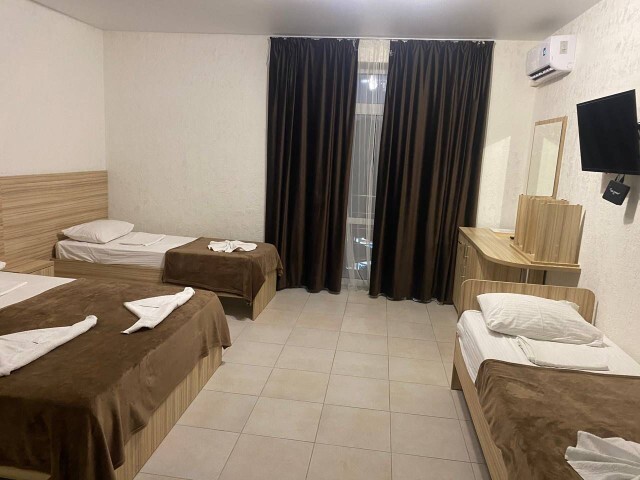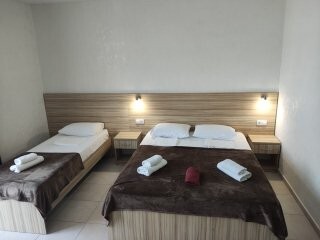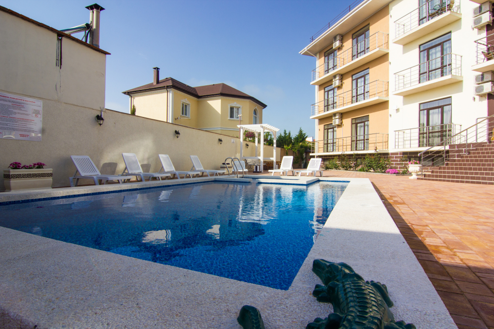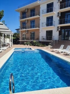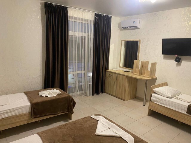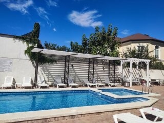 Вы можете снять уютные, чистые, комфортные номера со всеми удобствами. На закрытой территории есть открытый бассейн, парковка, зона отдыха с мангалом. Также к Вашим услугам гладильные принадлежности, беспроводной интернет, а также столовая, где Вы сможете отведать вкусные домашние блюда.
