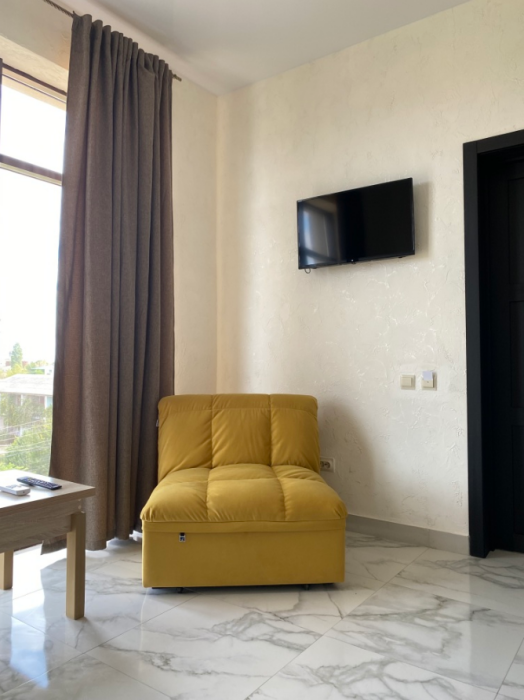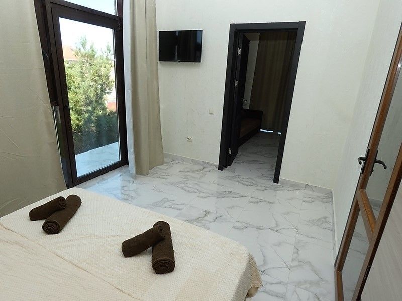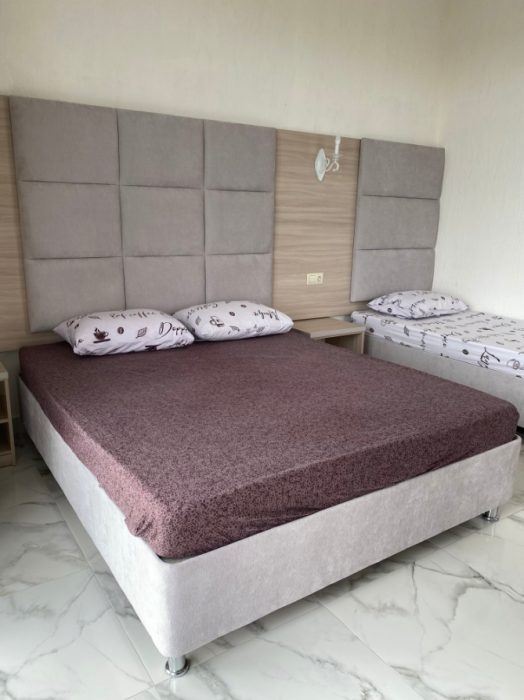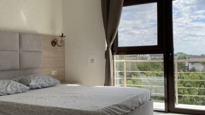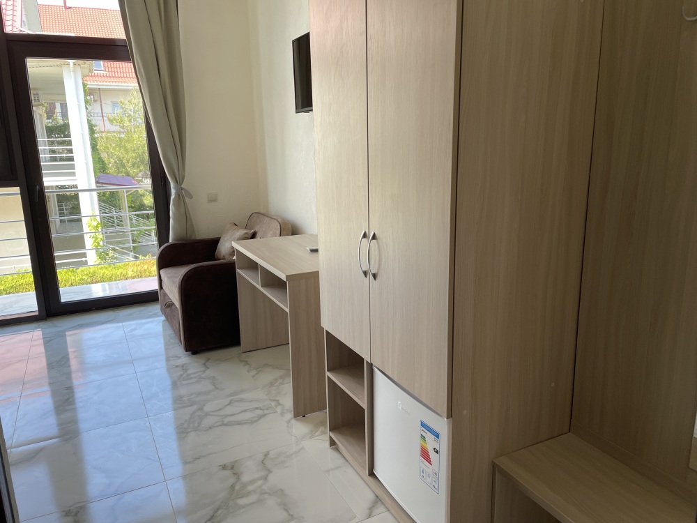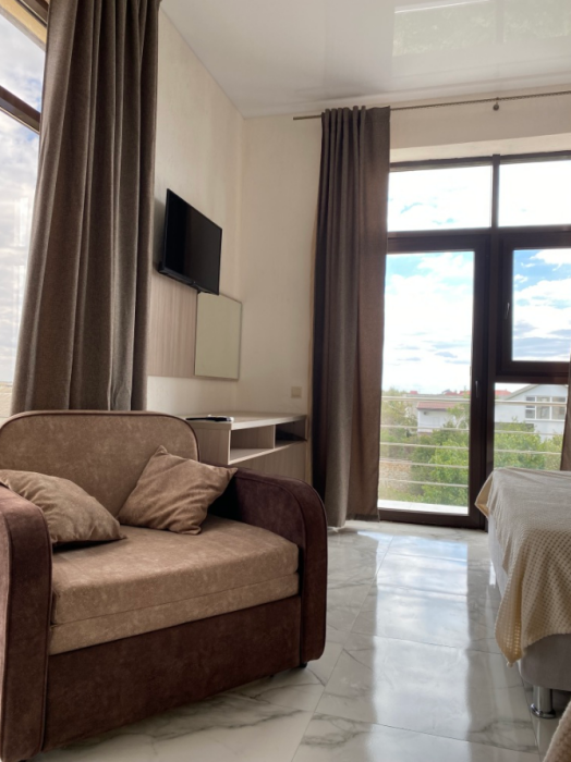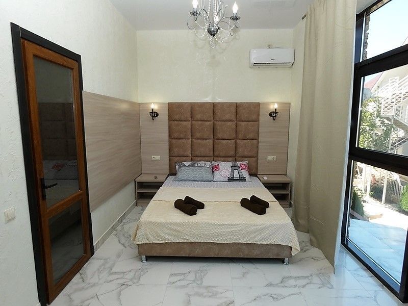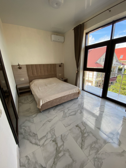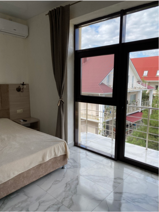 Гостевой дом «Альянс» построен 2021 году, есть большой уютный ресепшн, просторная столовая на 40 посадочных мест с панорамными окнами с выходом на улицу. Все комнаты с новым дизайном, размером 20-30 кв м. Все номера оснащены телевизором смарт тв, кондиционером, холодильником, шкафом, зеркалом, тумбочками. Также в номерах есть свой санузел: раковина, туалет, душевая кабина, фен, туалетная бумага, полотенце.