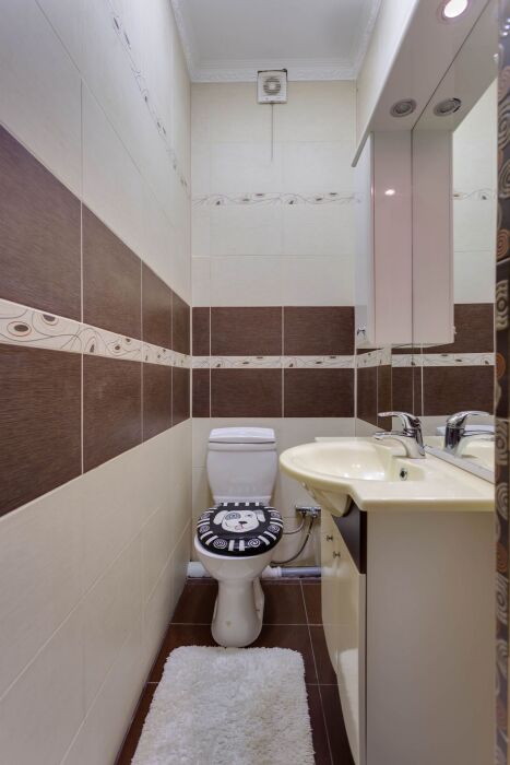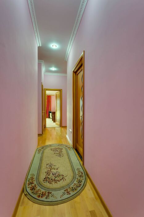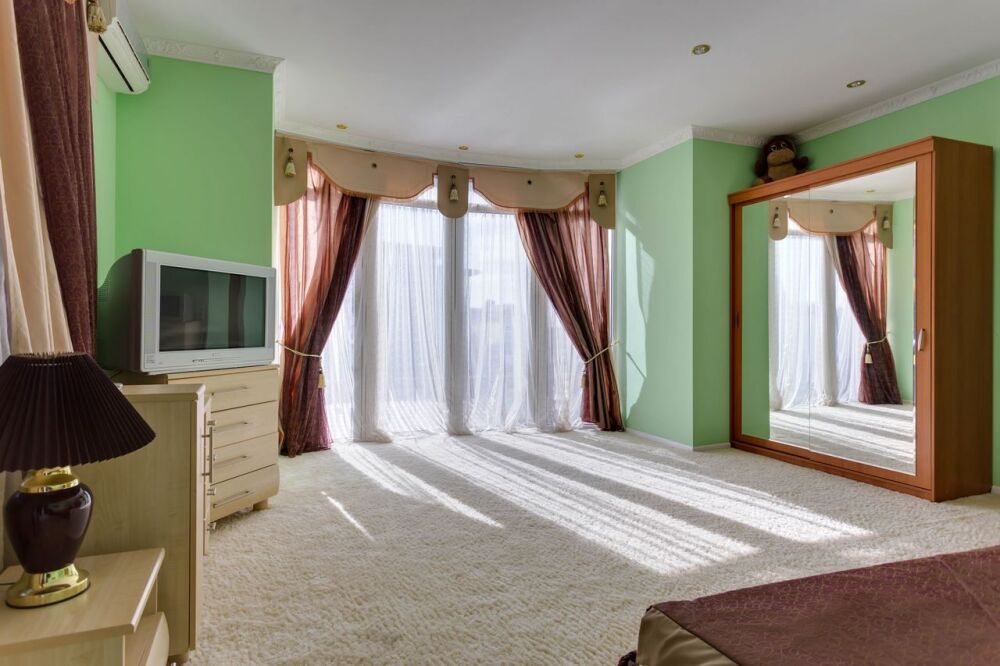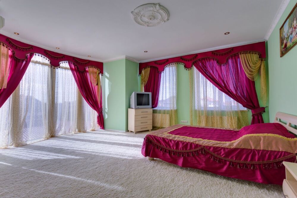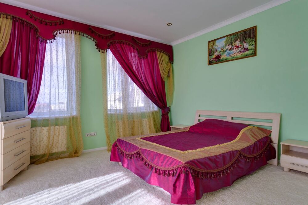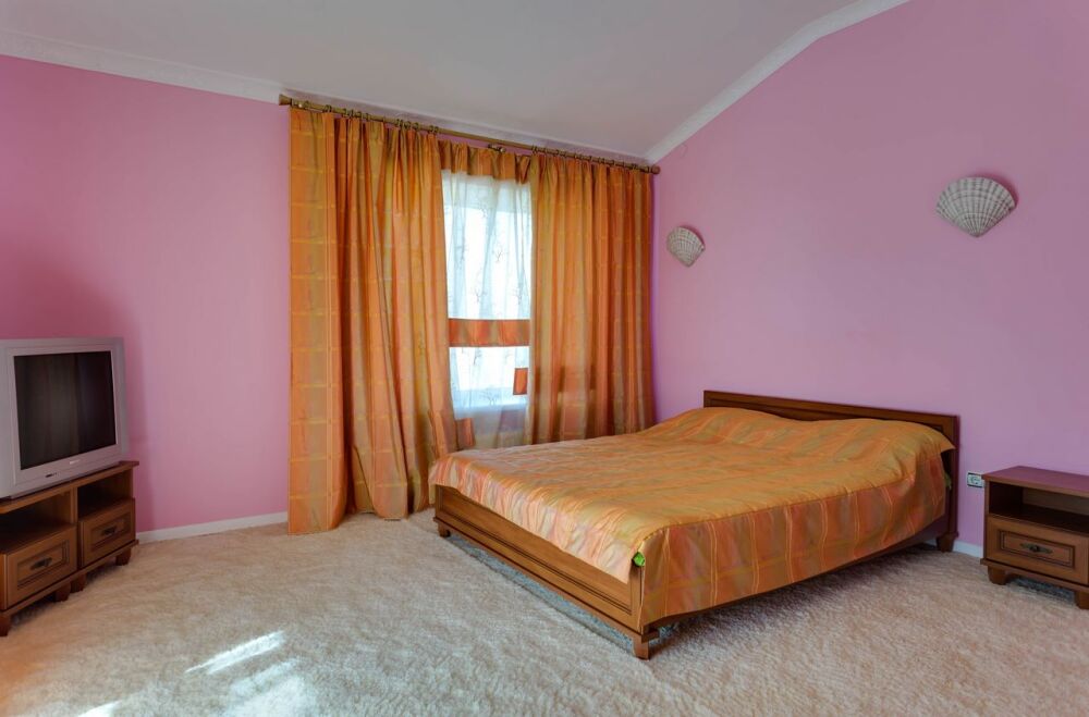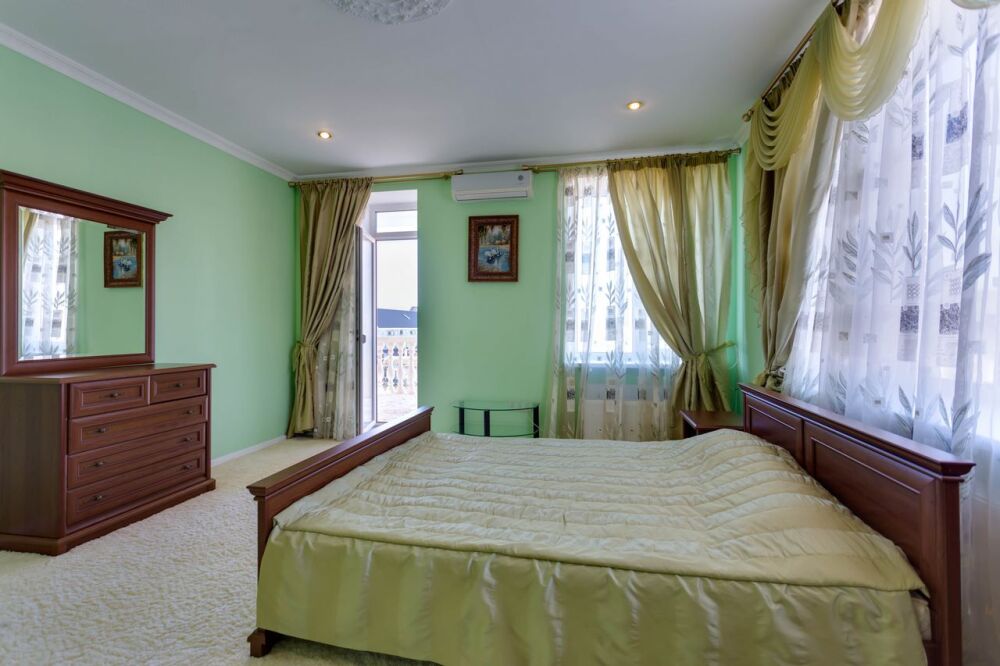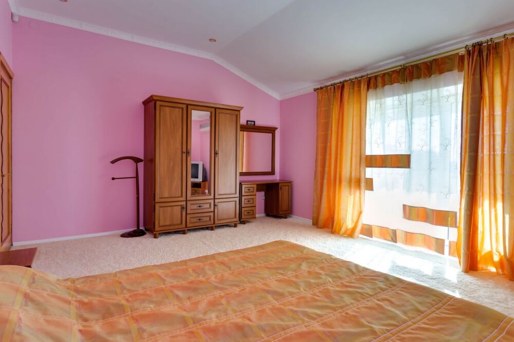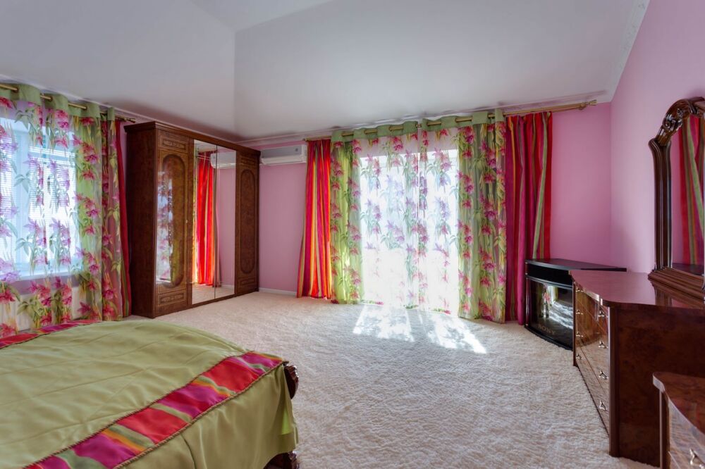 На трех этажах дома может разместиться большая компания, а восемь уютных спален обеспечат спокойных и комфортный отдых. Здесь будет удобно и взрослым, для которых предусмотрены большие двуспальные кровати, и малышам, для которых в спальне можно установить детскую кроватку.