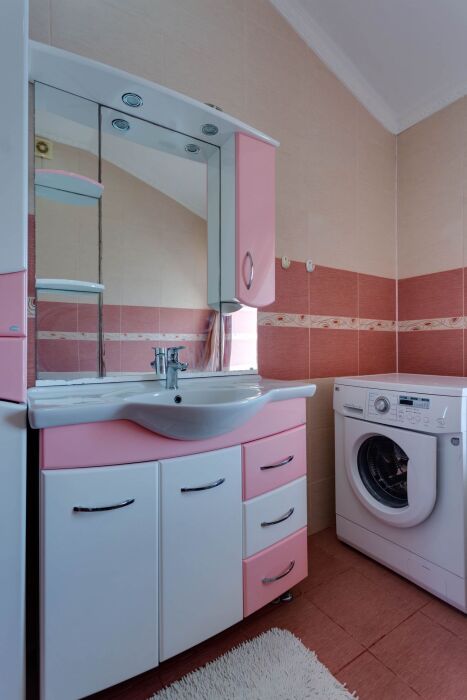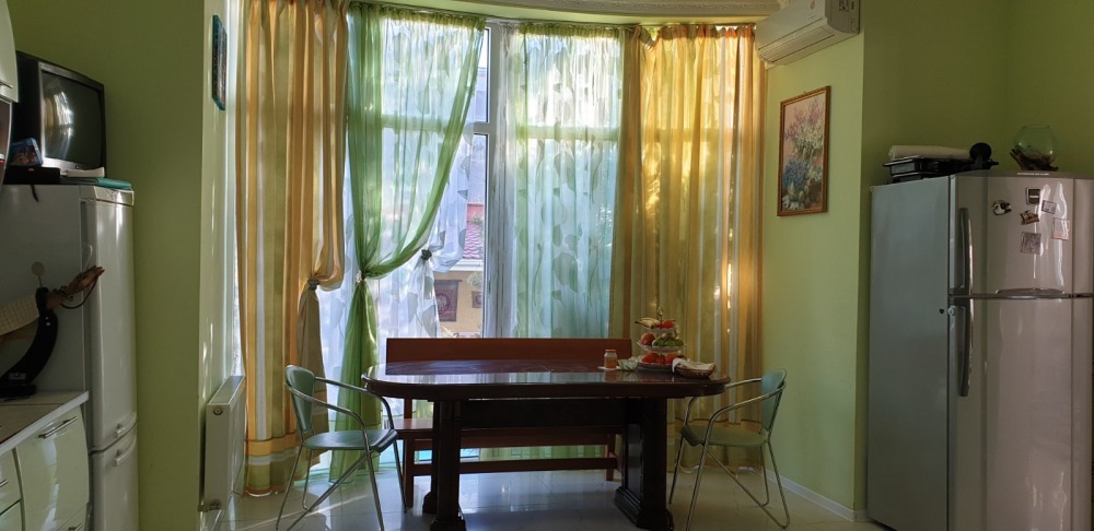В доме шесть санузлов, две стиральных машинки, гладильная комната, большая кухня со всем необходимым для приготовления, в кухне 2 детских стульчика для кормления. Из 6 спальных комнат есть выход на балкон с видом на море. На всей территории дома безлимитный Wi-Fi интернет.