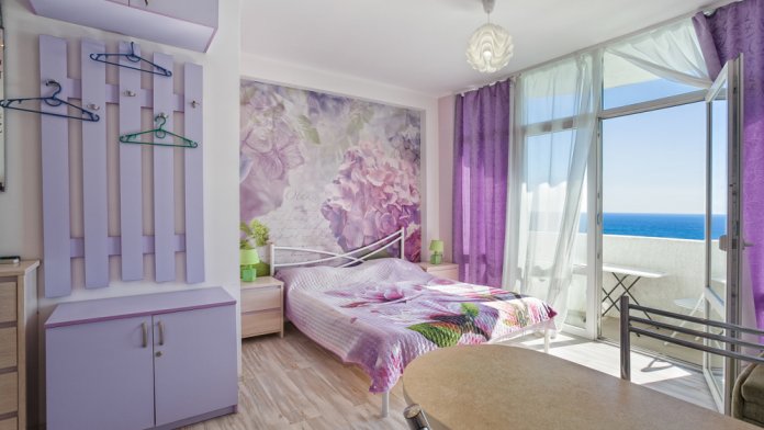 Квартира в фиолетовых тонах для двоих. Потрясающий вид на море. Новый дом.