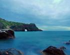 Неподалеку от монастыря есть решетки вулкана, который давно угас. Его темная массивная порода отчетливо видна на фоне светлого побережья.
